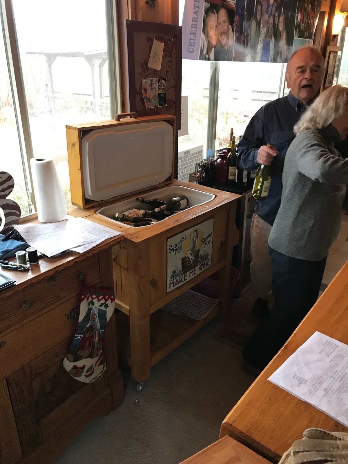 Sunday after church and lunch, we drove up to Parker Binns for a little bit before heading to Greenville for our traditional New Year’s Eve dinner & comedy. BTW, if you’ve never tried Uber, you must! It’s fantastic! Since it was so cold, we were pleasantly surprised to see how busy they were. Sadly they were out of our favorite which is the Rose, but we enjoyed the Lulu Red for a nice change. As we were leaving sweet Dee was there, enjoying a glass on her day off on the OTHER side of wine bar!