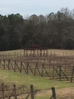 First winery stop was Enoree River Vineyard and Winery in Newberry. We drove up we were greeted by the three dogs, Dusty, Tipsy and Maggie. We had a nice visit with Richard and they have some lovely wines! We shared a bottle of their great Gewurztraminer. We also got to sample a couple of wines that we had not had there before Saturday. The Sweet Tipsy Rose is 1/3 Carlos, 1/3 Vinifera White and 1/3 Vinifera Red. While discussing this wine with Claudia, Richard’s daughter, she couldn’t remember the exact varietals that were used and Richard and Dennis were deep in conversation and we didn’t want to interrupt. This is a very lovely wine that would be great to have on a warm summer day sitting on the porch. Another I got to try was the Curiously White it is named that because they are not certain of the muscadine varietal. The reason is that they had thought that they purchased all Carols vines and when the grapes matured they discovered several vines were something else. Again, it’s a fun wine that I think would be great in the summer or possibly make a terrific wine slushy. The wines are great, everyone at the winery is super nice including the dogs, apparently they have a cat named Robin, but I don’t believe I’ve seen her. We missed seeing Laura on this trip though. But Pack the Porch will be returning soon so hopefully we will get to see her then!