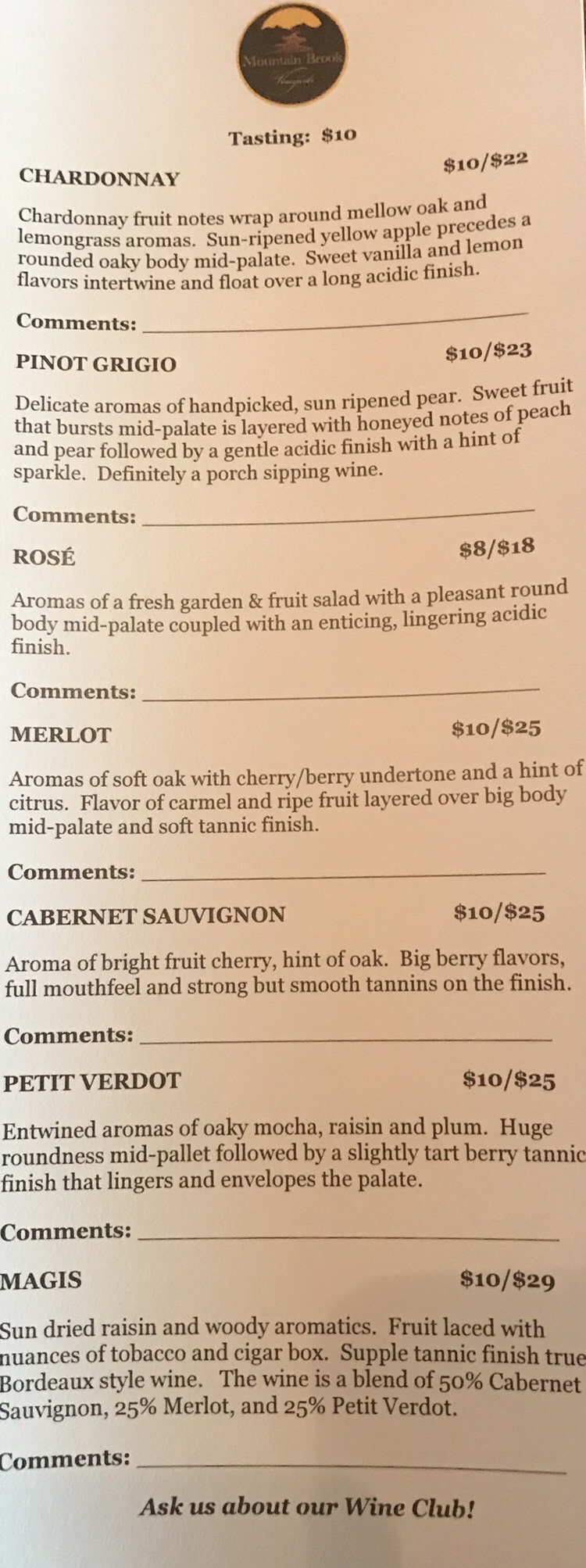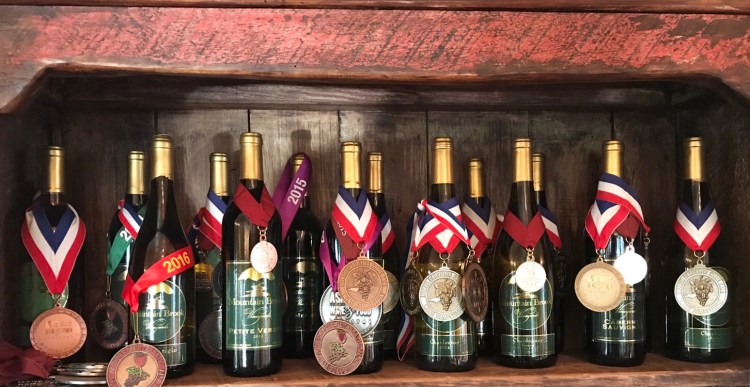 Previous owners, Dennis and Mir Lanahan, have created an award winning winery, with seven and a half acres under vine. The original root stock was planted in 2002. The current menu of seven wines have won numerous awards from competitions in North Carolina, San Francisco, and The Finger Lakes of New York. An oaked Chardonnay and a Pinot Grigio make up the whites, along with a Rosè of Cab Franc. The reds are Merlot, Cabernet Sauvignon, Petit Verdot, and Magis, a Bordeaux style blend.