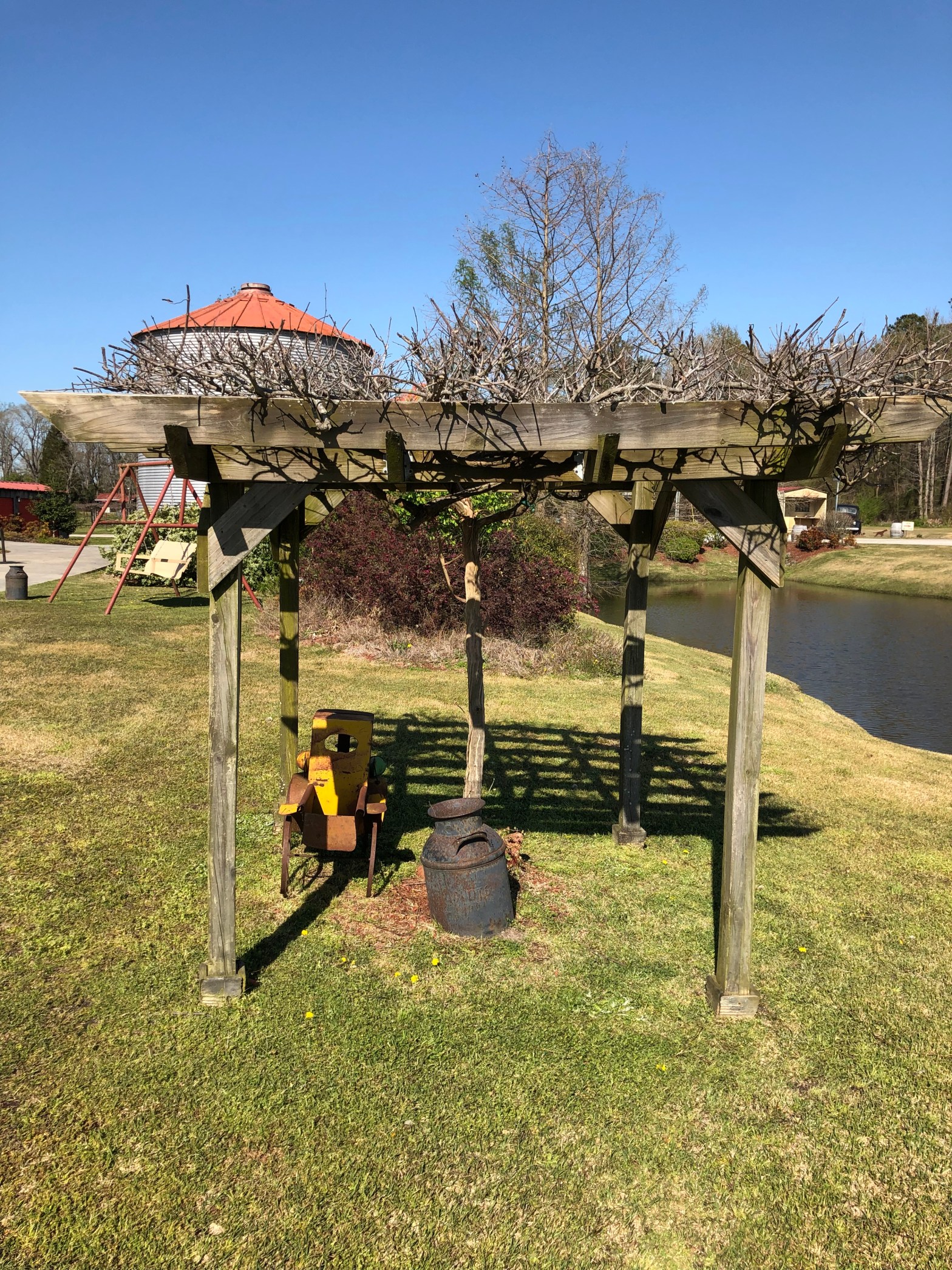 We left there and headed on towards the Wilmington area. We stayed 4 wonderful nights at Lu Mil Vineyard and Winery. They have 9 cabins on the property that are amazing! They are also a muscadine vineyard. They have 78 acres under vine. They have some cold fermented wines (amazing!) Harmony Hall and Sir Walter Raleigh, some dry muscadine and yummy slushies. They also make some non-alcoholic ciders. We got to have an amazing tour of the entire property. They have a old western town themed area, a tiny chapel, 2 gazebo areas for events/weddings. They host a HUGE light show at Christmas time that you drive through. There are geese, cows, donkeys and fish on the property as well. There’s also a small lake where you can fish. The property has been in the family for many years. They are still recovering from the recent hurricanes but unless you were told that, you wouldn’t really notice. Be sure to take quarters with you so you can feed the catfish and Koi fish in the pond outside the tasting room.
