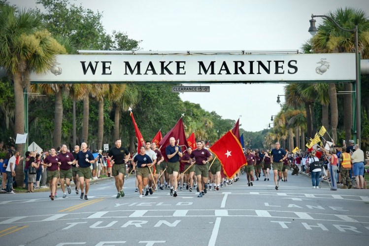 He graduated boot camp on July 19th. The entire graduation experience on Parris Island was truly unique. We arrived in Beaufort on Wednesday evening and enjoyed a waterfront dinner at Dockside. We had to arrive approximately 6am at Parris Island on Thursday for family day. The Motivational Run (Moto Run) started at 7am.