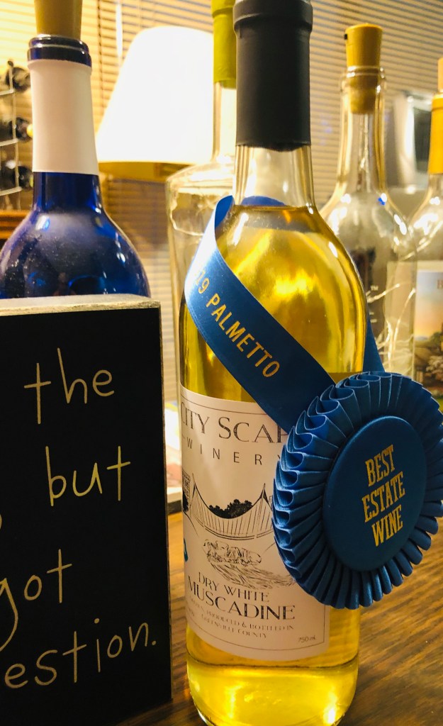 The Dry White Muscadine from CityScape Winery in Pelzer leads off our Half Case of Palmetto Signature Wines 2019. Dry White Muscadine also won the award for Best Estate Wine. Produced of Carlos Muscadine this wine is expressively aromatic on the nose, dry and crisp on the palate.