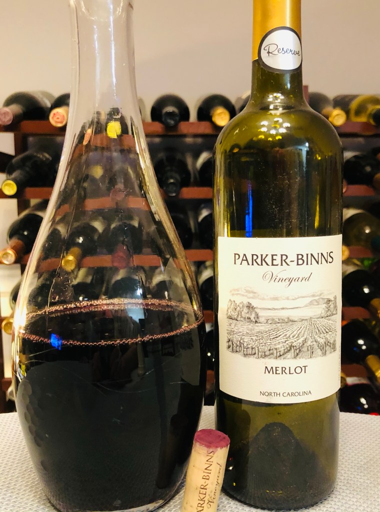 Our wine tonight is the Reserve Merlot from Parker-Binns Vineyard in Tryon, North Carolina.