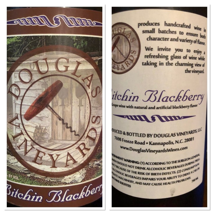 Our wine tonight is the Bitchin Blackberry from Douglas Vineyards in Kannapolis, North Carolina.