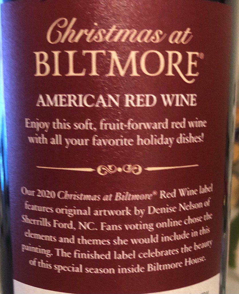 Label artwork by Denise Nelson of North Carolina celebrates the beauty of the large fireplace in the library decorated in all it’s Christmas glory.