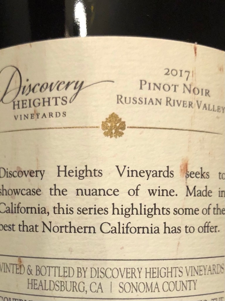 Our wine tonight is the Pinot Noir from Discovery Heights Vineyards.