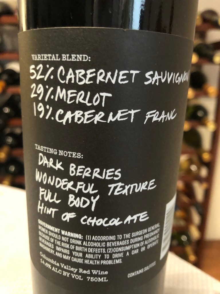 Our wine tonight is the Blackboard Red Wine by Matthews Estate of Walla Walla, Washington.