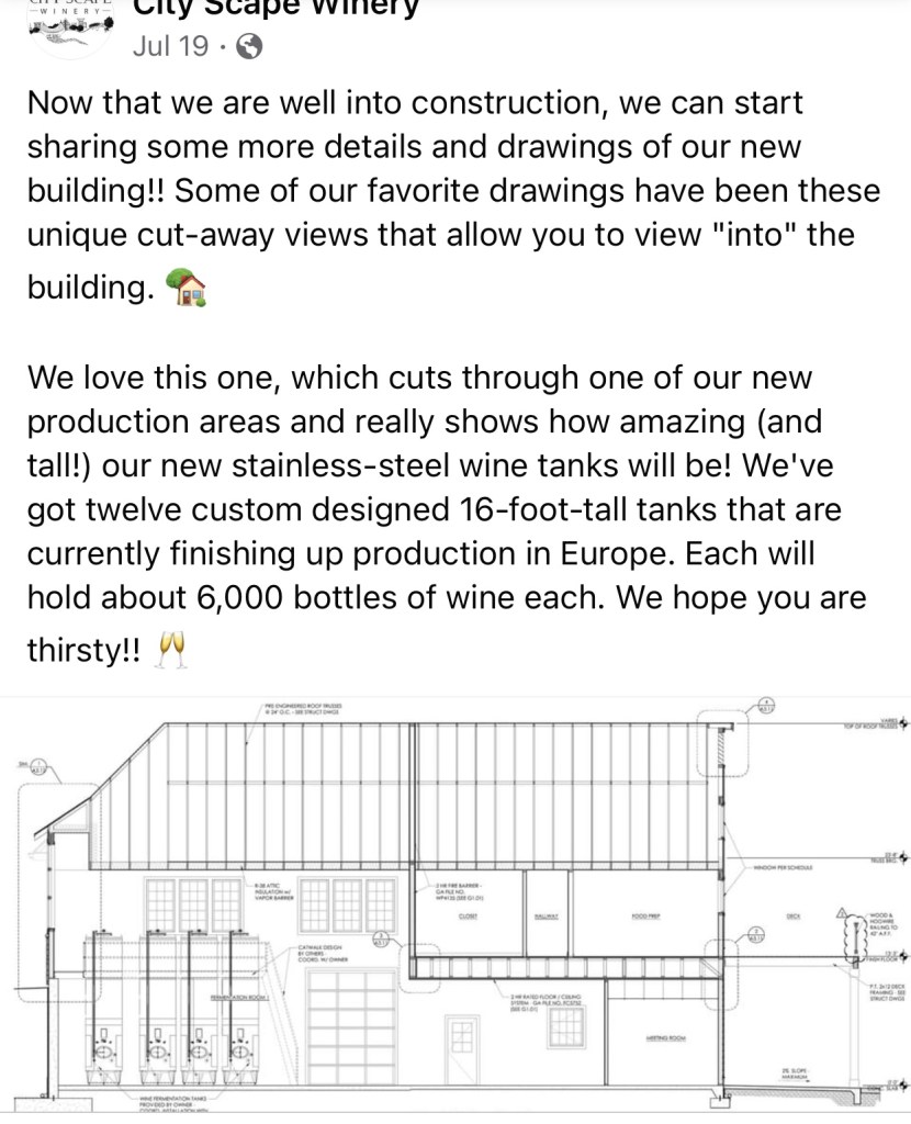 We recently stopped by CityScape Winery to check on the construction progress of their new 10,000+ sq. ft. tasting room and production facility.