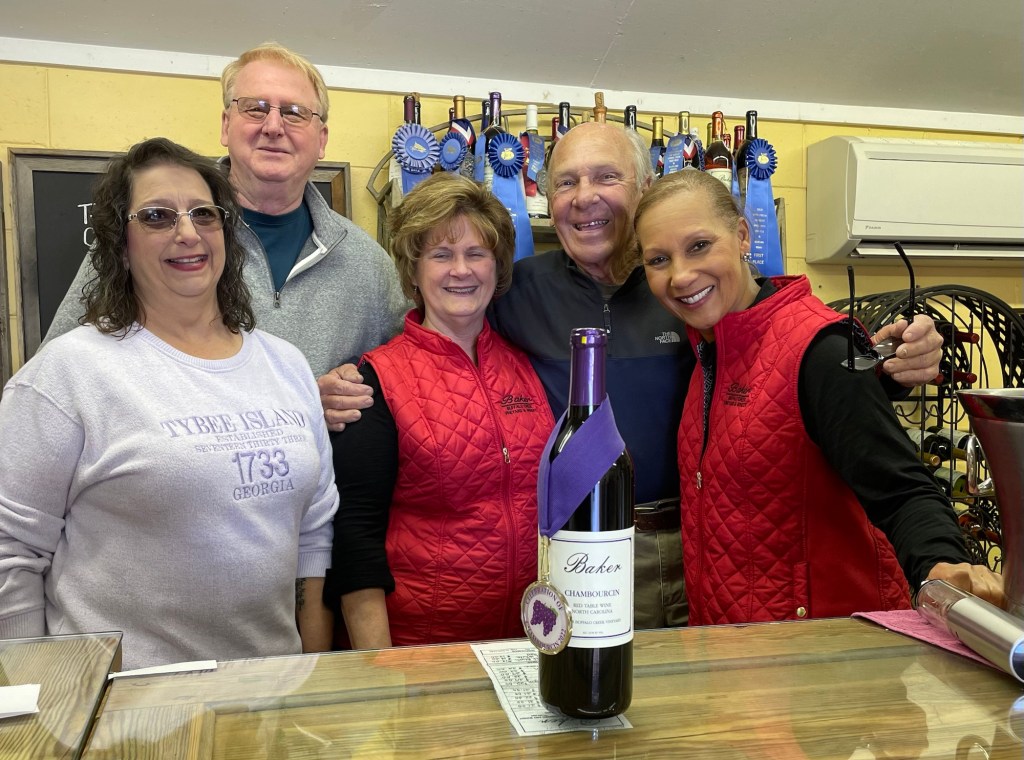 Gold medal winning wines are Paco Rojo from Fabbioli Cellars in Leesburg, Virginia, 2021 LuLu Red from Parker-Binns Vineyard in Tryon Foothills, North Carolina, and the Chambourcin from Baker Buffalo Creek Vineyard in Lawndale, North Carolina.