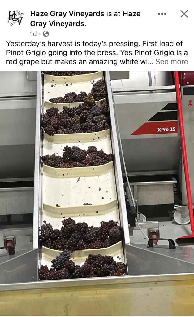 Straight from the field to the press! Did you know Pinot Grigio can have a dark color skin! π€· So yeah no skin contact for this juice!