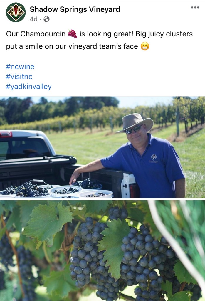 Cheers to all the hard work our local vineyard managers, owners, helpers, and winemakers put in to cultivate, harvest, and ferment this beautiful fruit into award-winning #NCWine! 🍷🍷