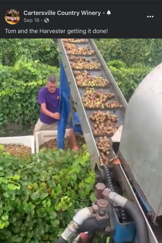 Locklear Vineyard and Winery mechanically harvested a bountiful yield of Muscadine.
