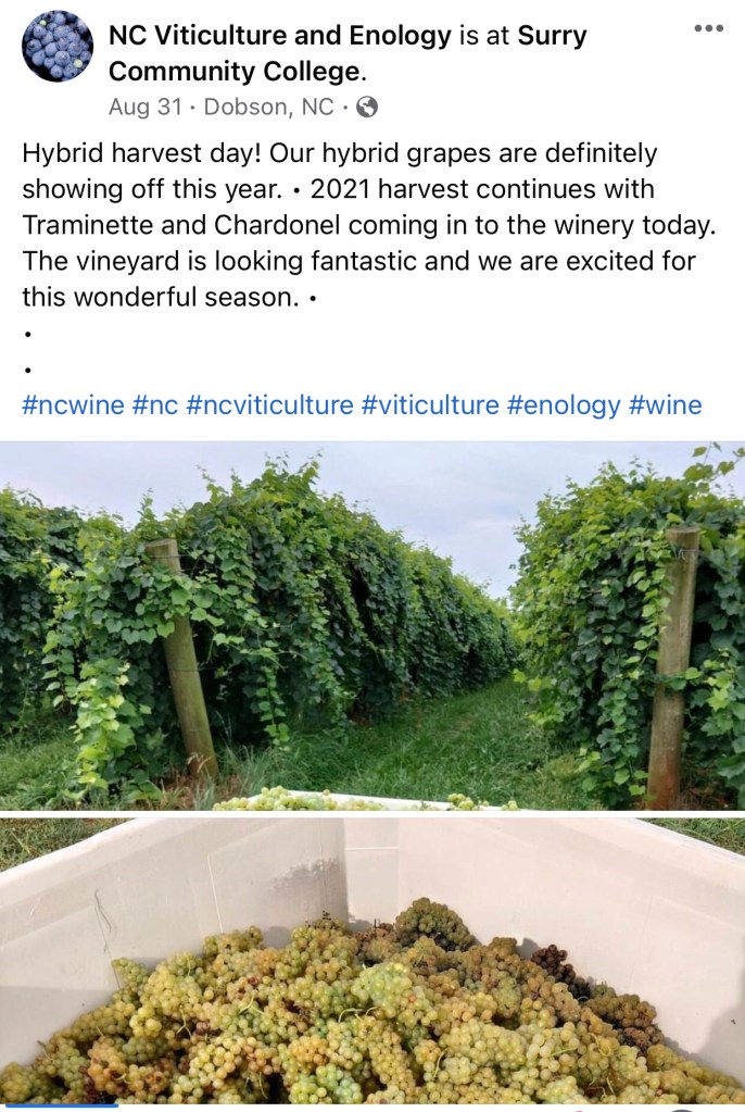 Surry Community College program NC Viticulture and Enology showed off some gorgeous Traminette!
