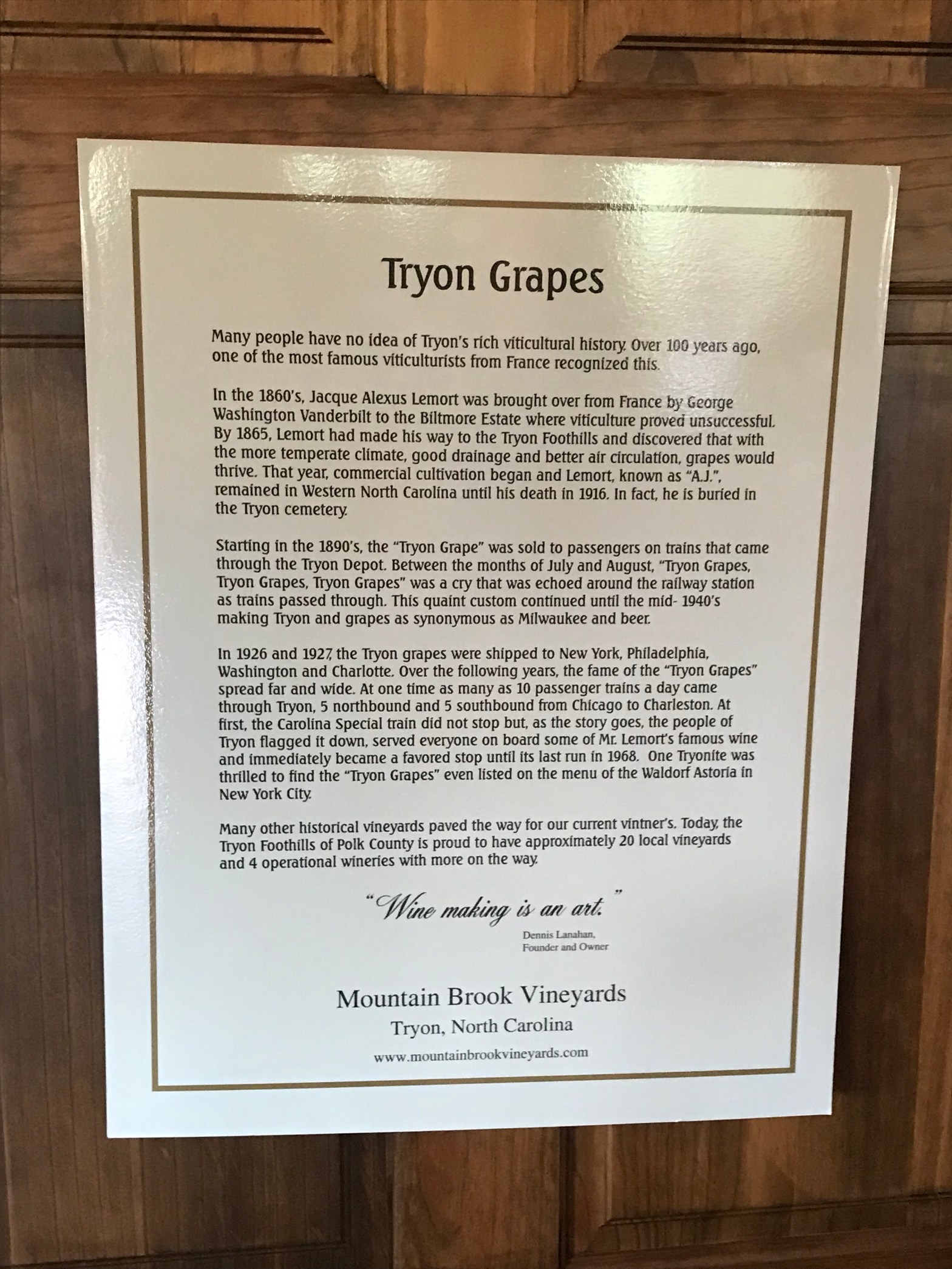 Below is an excerpt of a current writing project. In the late 1800’s to early 1900’s, Tryon table grapes and wines produced from grapes grown in the region were served in the finest restaurants all over the United States of America. It was often heard in New York, “give me Tryon grape.” The wines becameContinue reading “Grape History of Tryon”